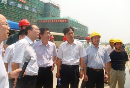 8月3日,江蘇省無錫市委副書記、無錫市市長毛小平,無錫市常務(wù)副市長徐劼在無錫市規(guī)劃局局長翁林敏、無錫市錫東新城建設(shè)發(fā)展有限公司等單位領(lǐng)導(dǎo)的陪同下,到廣廈水岸佳苑安置小區(qū)B地塊三標段工地視察,廣廈第五建設(shè)公司總經(jīng)理張竹仁全程陪同。